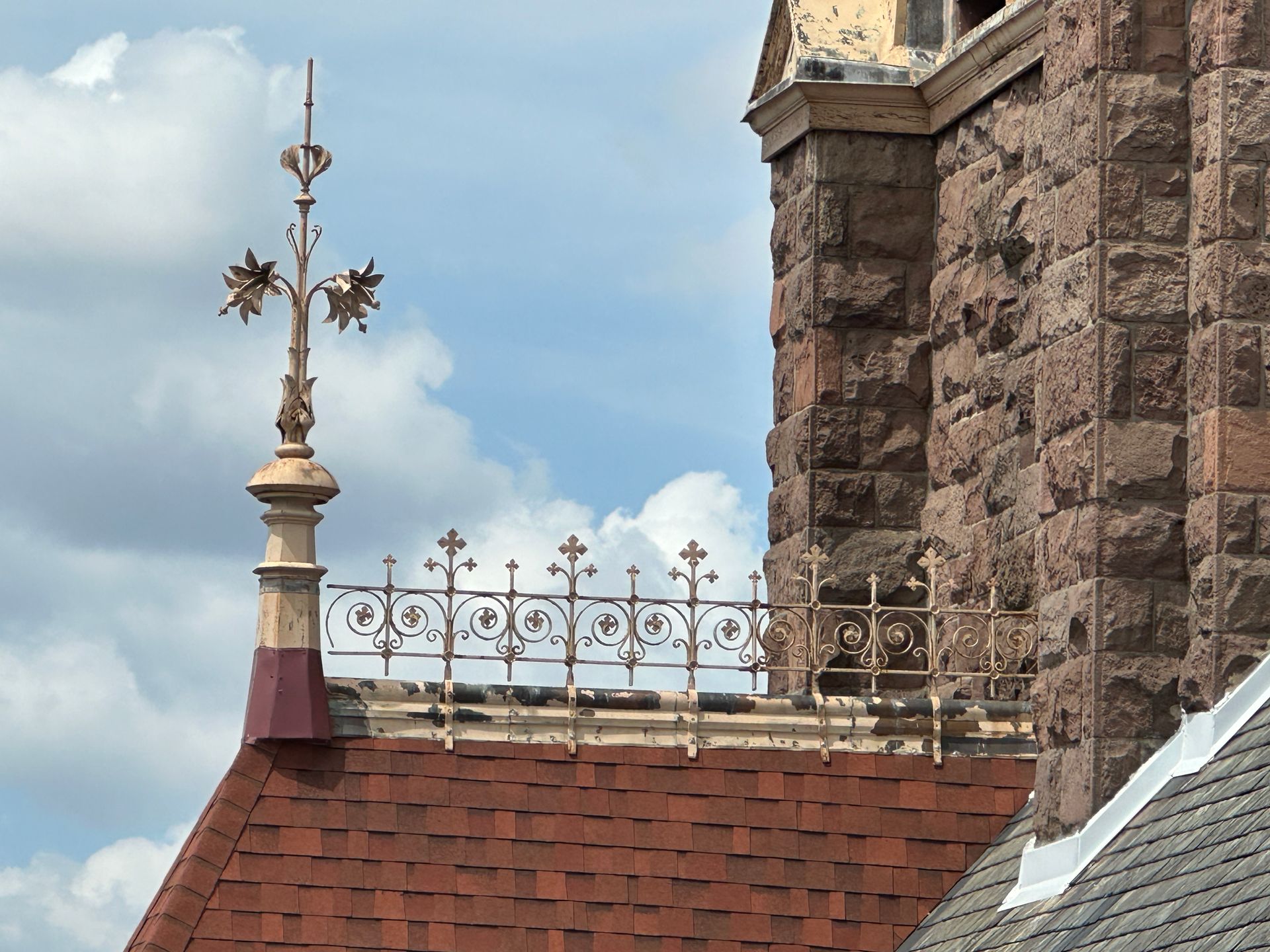 The project includes removal of the existing deteriorated slate roofing system and replacement with an asphalt shingle roof system. Sheet metal hip and ridge flashings will be replicated and replaced. Sheet metal finials and decorative cast iron cresting will be salvaged, restored, and reinstalled. The project is anticipated to be completed in the Spring of 2025.